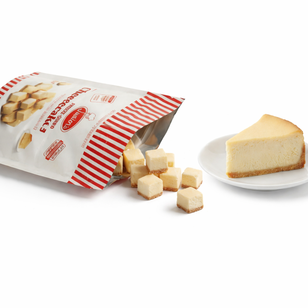 In partnership with the world-renowned Junior’s cheesecake brand, we saw an opportunity to honor greatness — and elevate it. Recognizing Junior’s as one of the most beloved cheesecakes in the world, we partnered and licensed under their brand to create something entirely new under their name. Through advanced freeze-drying innovation, we developed the first-ever freeze-dried Junior’s Cheesecake Bites — transforming a legendary dessert into a totally crunchy, shelf-stable, irresistibly yummy snack.